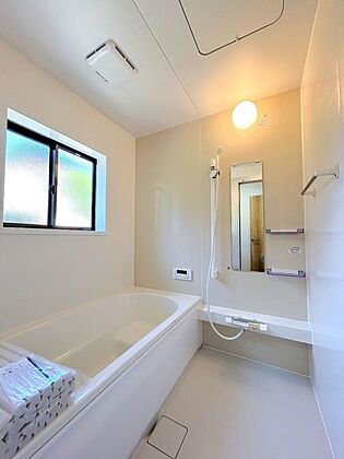 •  【リフォーム済】浴室はユッタリ1坪タイプのユニットバスに交換しました。自動湯張り・追い焚き機能付きで、床は水はけが良く、お掃除もスムーズ。採光と通風を兼ね備えた窓があるので、明るい印象を受けます。