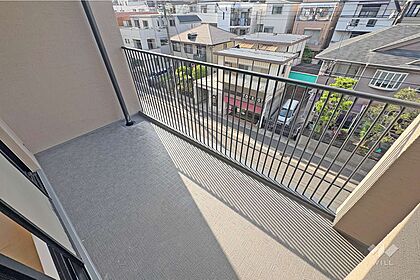 キッチン横バルコニーは、広さはありませんが、洗濯物が見えにくいガラスを採用。プライバシーに配慮されています。