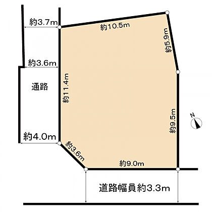 | 土地面積/坪(坪単価) | 180.31m2(登記簿)/54.64坪(17.90万円) | 代表的な接道 | 角地 公道 南 3.3m ※詳細は備考欄をご確認ください |
