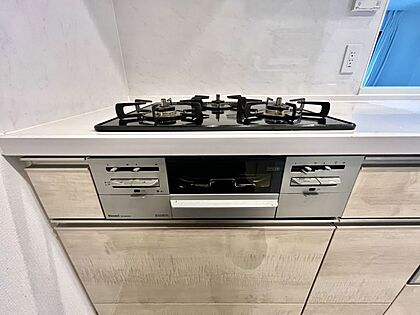 システムキッチン3口コンロ(グリル付)。お料理の幅が広がります!