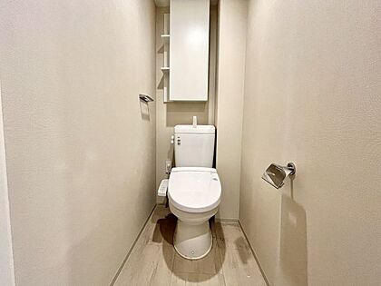 収納棚付きのトイレスペース◎トイレットペーパーなど見えない収納が可能です!