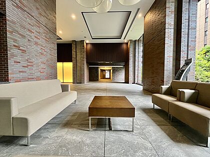 マンションの顏のエントランスはゆとりを感じさせ高級かつ重厚な雰囲気です。