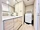 広々としたワイド鏡が、使いやすさと開放感をプラス。ご家族みんなで使いやすい洗面スペースです!