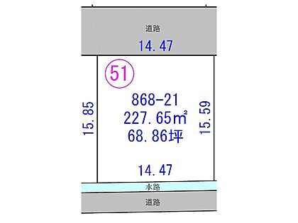 | 土地面積/坪(坪単価) | 227.65m2/68.98坪(14.10万円) | 代表的な接道 | 一方 公道 北 6m ※詳細は備考欄をご確認ください |
