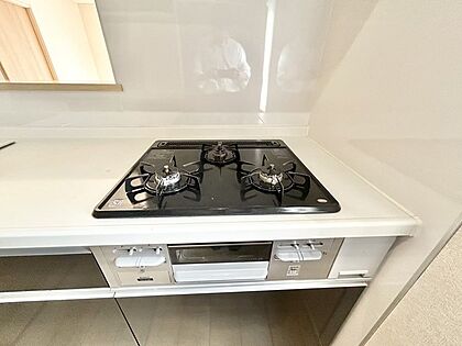 お掃除のしやすいフラットタイプの3口コンロです。