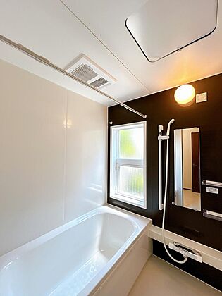 【リフォーム済】浴室。古いユニットバスを解体し、新しいユニットバスに交換いたしました。追い焚きと自動湯張りで快適です。疲れた体を癒すのに、ユニットバスは嬉しいですね。