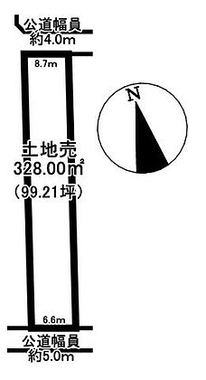 | 土地面積/坪(坪単価) | 328.00m2(登記簿)/99.39坪(20.00万円) | 代表的な接道 | 角地 公道 北 4m、南 5m ※詳細は備考欄をご確認ください |