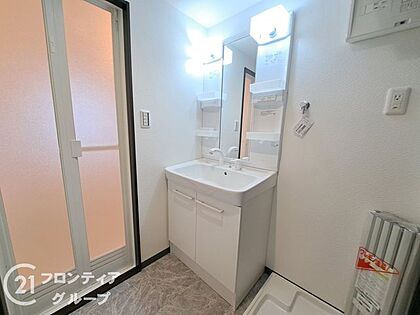 清潔感あふれるデザインの洗面台は、広々としたスペースで毎日の身支度が快適に行え、使い勝手がとても良いです!