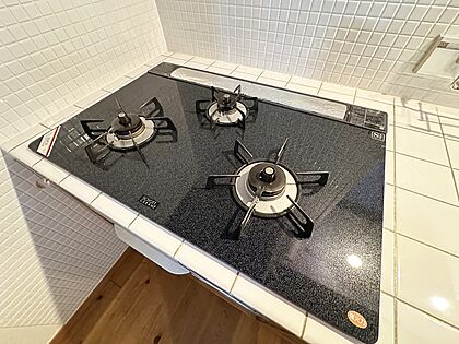 【キッチン】3口ガスコンロで同時調理も楽にできます。お料理のレパートリーも増えそうです。(2025年5月撮影)