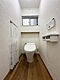 【トイレ】棚付きでトイレットペーパーなどのストックが可能です。(2025年5月撮影)