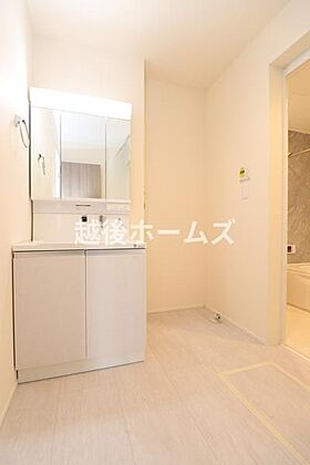 3面鏡のシャンプードレッサーは収納充実!朝のお支度も楽々できますね。