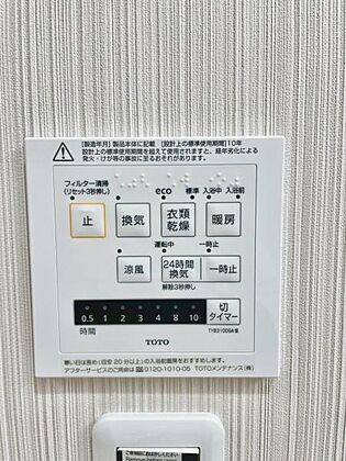 梅雨や花粉の時期に嬉しい浴室換気暖房乾燥機付き