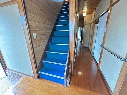 【リフォーム中】階段。手すり新設、階段塗装、ノンスリップ設置を行います。手すりが付いていますのでご高齢の方でも上り下り安心です。