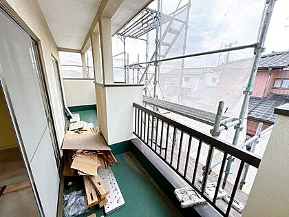 【リフォーム中】ベランダ。防水塗装を行います。お天気のいい休日は家族の布団も干せます。フカフカの布団で眠れる幸せ「ママに感謝」お日さまの香りが2日疲れた体をあたたかく包み込みます。