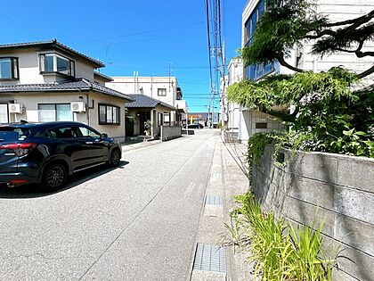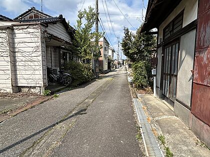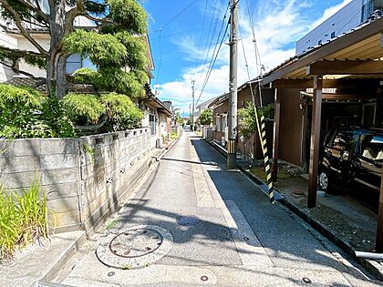 前面道路です。幅員は3.8mです。再建築の際は0・1mのセットバックが必要となります。