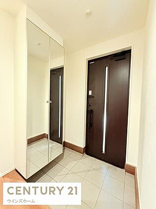 白を基調とした明るい玄関は、豊富な収納でスッキリと片付き、清潔感のある印象に。毎日の出入りが快適になる機能的な空間です。姿見付きで玄関に奥行を持たせます。