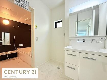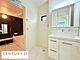 洗面室はゆとりある広さで毎朝の準備も快適です。洗面台収納には、お洗濯用品やスキンケア用品などしっかり収納できるようスペースも充実しています!