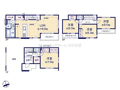 解放感のある2階リビングプラン!LDK広々19帖!解放感のある南側バルコニー2ヶ所。納戸、リネン庫、パントリーなど充実の収納スペース!