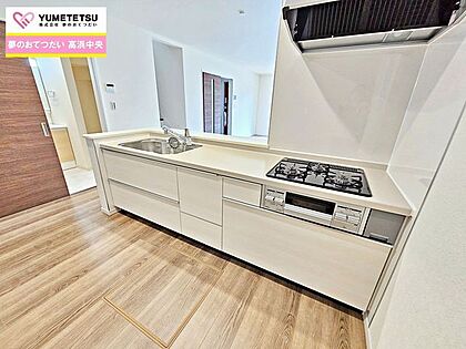 使いやすいキッチンです。収納付キッチンでフライパン・パスタ鍋・圧力鍋の出し入れが便利です。作業台はお手入れがしやすく、また幅が広いのでお子さまといっしょにお料理することも可能です。