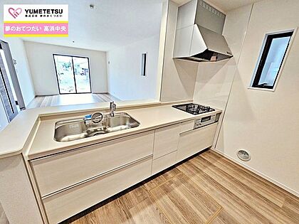 リビングで遊ぶお子様の様子を見つつ、ご家族とのお話を楽しみながら家事を進めることができる対面式キッチン☆お皿洗いも好きなテレビ番組を見ながら、あっという間に終わるはず!オプション工事も承ります!