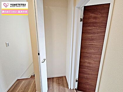 階段上がってすぐの収納スペースです。普段使いしないキャリーケースのような大きなものもきれいに収納できます♪