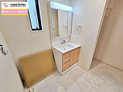 三面鏡にハンドシャワー付で使いやすい洗面台です。洗面脱衣室もゆったりの広さ。人気の三面鏡ドレッサーは、身支度に便利なだけでなく収納にも優れています。シャワーヘッドつきなので朝シャンも出来ますね。