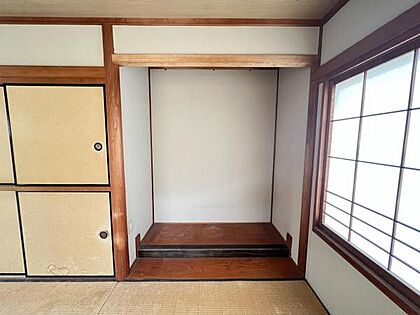 直接布団を敷いて寝ることができる和室。寝具が収納できる押入付きです。
