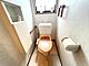 トイレでございます。収納棚付きでペーパーの保管場所にも困りませんね。