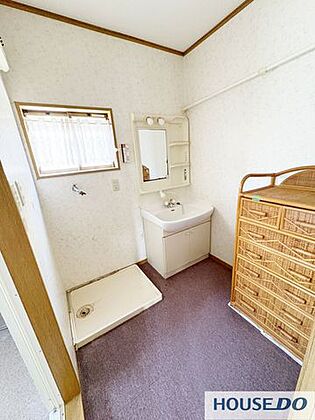 洗面化粧台付き。お出かけ前のチェックやちょっとした洗濯にも便利です。