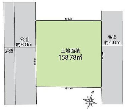 | 土地面積/坪(坪単価) | 158.78m2(登記簿)/48.12坪(47.40万円) | 代表的な接道 | 二方 公道 西 6m、東 4m ※詳細は備考欄をご確認ください |