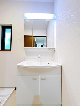 【リフォーム済・即入居可】洗面化粧台は三面鏡タイプを採用しました。朝の支度がしやすく、見た目もすっきりします。