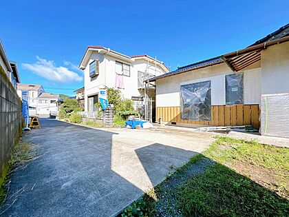 【リフォーム済・即入居可】駐車場です。車種によりますが普通車4台ほど駐車可能です。敷地内奥は庭スペースも確保しております。
