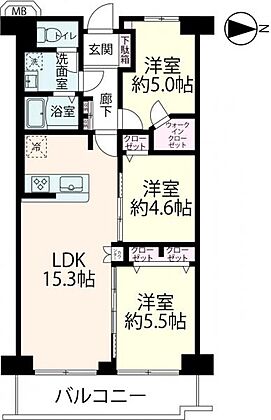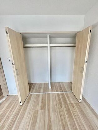 収納充実5.5帖の洋室。壁一面がクローゼットのためお部屋がすっきりと片付きます。