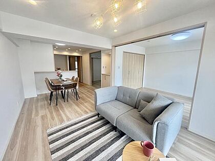 縦長の形状のため、リビング部分とダイニング部分の使い分けがしやすいLDKです