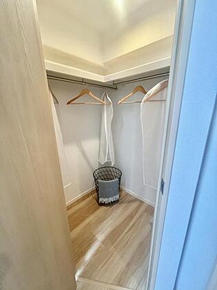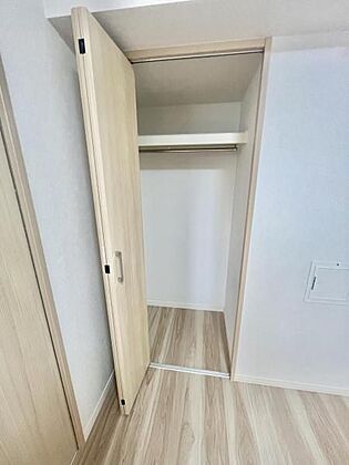 大きいクローゼットはハンガーポール付きで嵩張る衣類も効率的に収納できます。