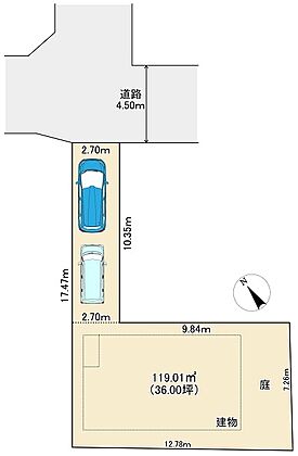 カースペース2台分(車種によります)写真は南側から撮影しております。