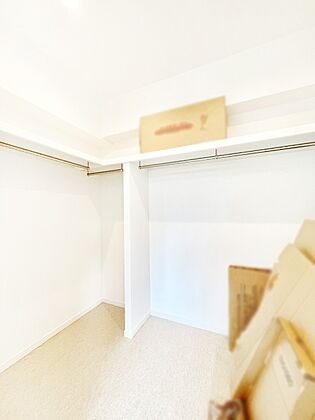 衣類をハンガーに掛けたまま収納できるWIC。衣類の整理整頓がしやすくて便利です!
