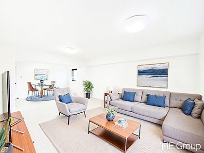 明るい陽光が注ぎ、寛ぎの雰囲気に満たされるリビングダイニング