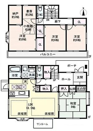 ゆとりの4LDKSは全室収納付でスッキリした生活が出来そうです。南向きのLDKは18.5帖。本物件図は略図の為、図面と異なる場合は現況優先となります