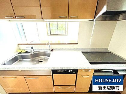 IHクッキングヒーター使用。作業スペースも広く、幅も広いため食洗器が設置できますね。食洗器付きのキッチンです。わずらわしい皿洗いの手間を減らすことが可能です。