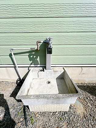 【外水栓】敷地南西にある外水道はクリーニングを行いました。洗車や玄関など外回りのお掃除、ガーデニングなど便利ですね。立水栓のため、使い勝手が良いです。