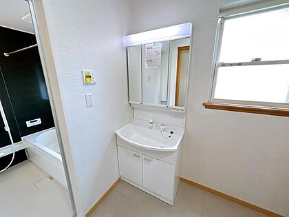 【同仕様写真】洗面化粧台は三面鏡タイプを採用しました。朝の支度がしやすく、見た目もすっきりします。