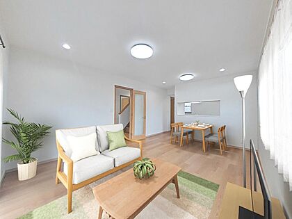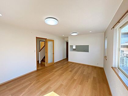【リフォーム中】リビングはフロアタイル重張、クロス張替、照明交換、建具クリーニングなどを行いました。テレビやソファ、ダイニングテーブルを置いて家族団欒の時間を過ごすことができそうですね。