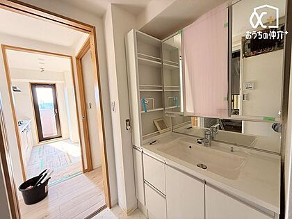 〜Wash room〜大きな鏡が特徴的な洗面台。特注サイズはマンションならでは。毎日の身支度が楽しみになる、そんな空間です。