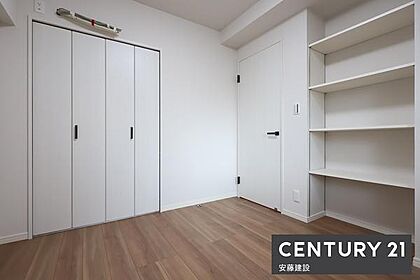 【 洋室 / 4.7帖 】清潔感溢れるシンプルな洋室!しっかり収納可能なクローゼットに使い勝手の良い可動棚完備
