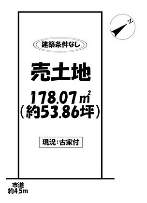 土地面積約53.86坪です。建築条件なしのためお好きなハウスメーカーさんで建築可能です。