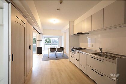 キッチンは、2025年4月にリフォーム済み。食器洗浄機、魚焼きグリル、三口コンロなどの設備あり。収納スペースが豊富にあるのもうれしいポイントです。