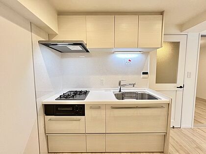 •  手を伸ばせばそこに収納が。安定した使用感の吊戸棚つきのキッチン空間。