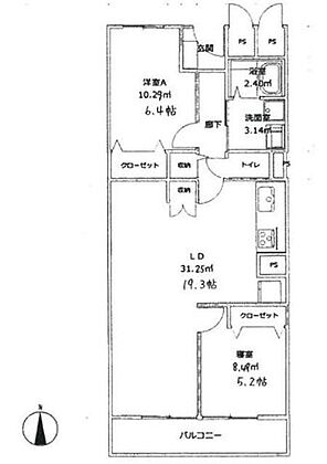 | バルコニー面積 | − | バルコニー向き | 南 |
