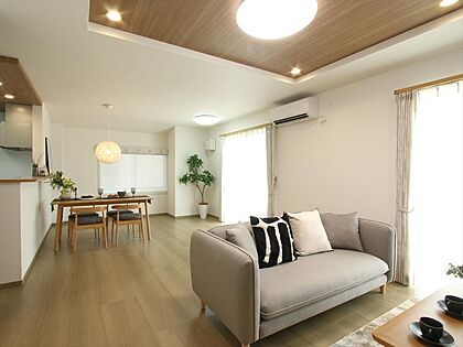 【土地面積202.93m2、建物面積118.35m2】 21帖の広々LDKでゆったりお家時間を過ごせます♪サニタリースペースがあるので雨の日の室内干しも楽ちんです♪